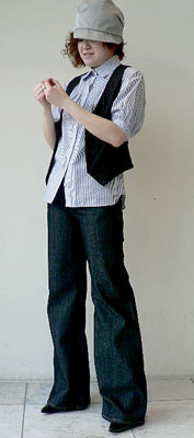 A.T ピンストライプgilet(ベスト) 黒