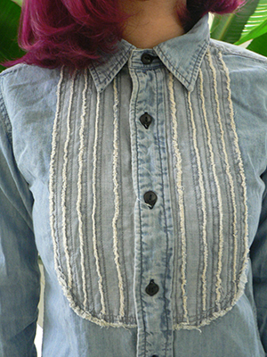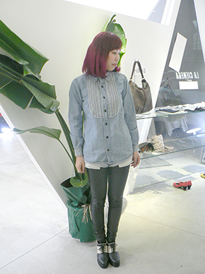 デニムシャツはカジュアルな感じですがこのフリルがあるとかわいくオシャレな着こなしに!!!^^