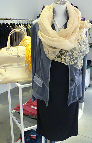 ジャケット¥18,900 ワンピ¥37,800 ストール¥14,700