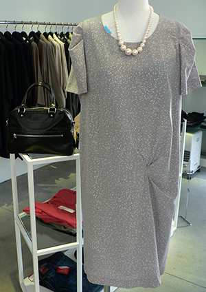 グレーの水玉のワンピースに