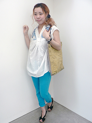 カラーパンツを使って夏らしいコーディネートに♪