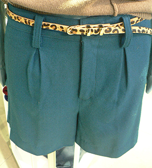 グリーンのショートパンツに