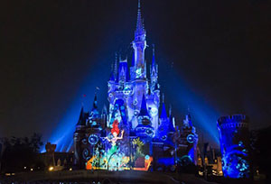 シンデレラ城をスクリーンにしたナイトショーも