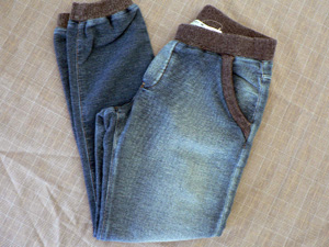 インディゴ染めのパイルパンツ。