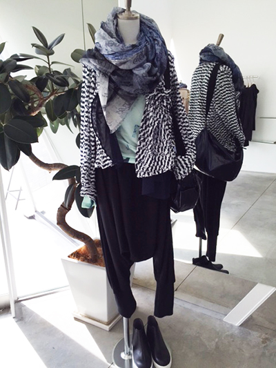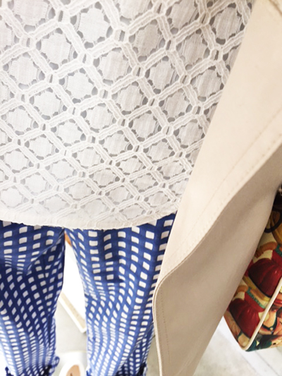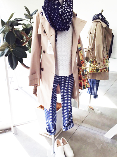 パンツのプリントは目を引くブルーのチェック。(*^_^*)