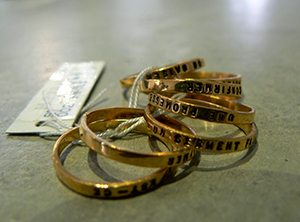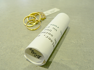 華奢な7本のリングに、刻まれているのはラブレターの詩。