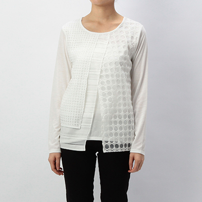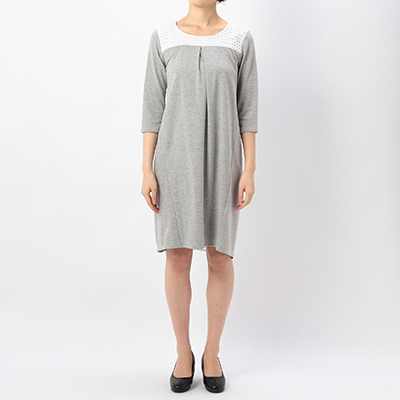 たっぷりとブロックレースをあしらったデザイン。
