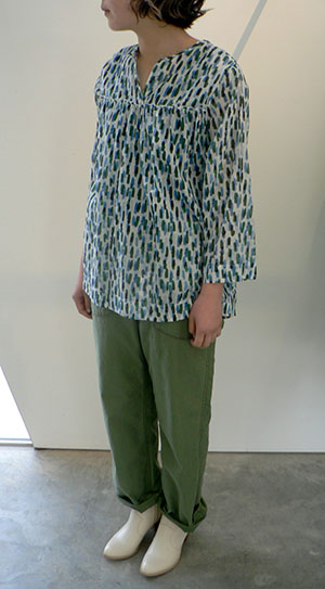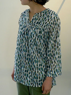 まるで手描きのタッチのようなプリントが素敵なブラウス。