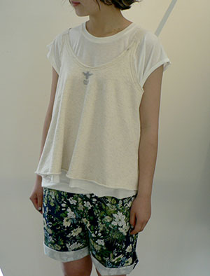 柔らい生地のリバーシブルタンクを合わせてcute に!