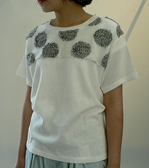 もけもけとした大きなドットのTシャツ。