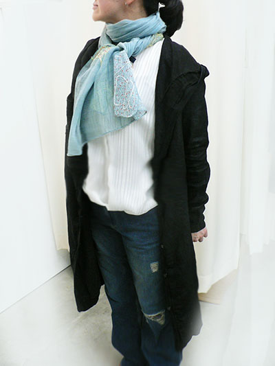 ブラック+ロングで一見重めな感じのするロングコートですが