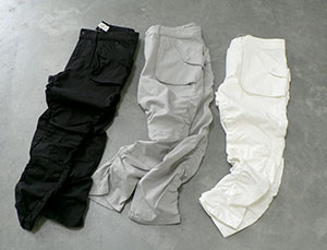 丈短めのシャーリングパンツは皆の定番。