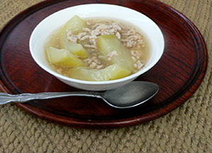 夕顔をひき肉であんかけに風に。