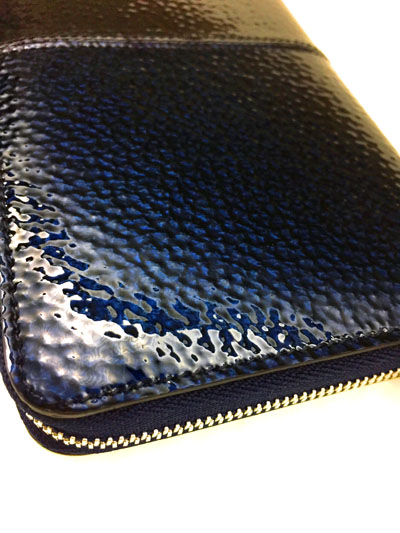 カーフレザーにエナメルコーティング。