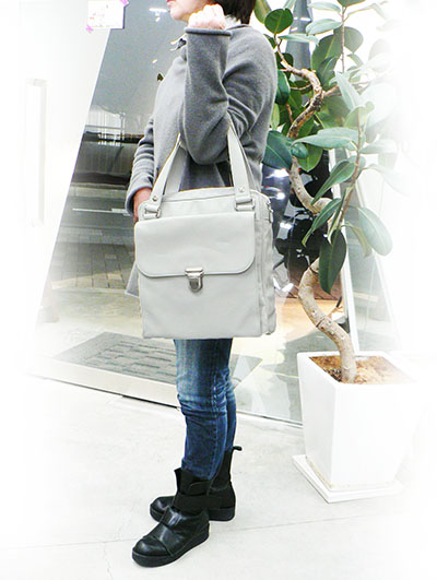 ワンショルダーで斜め掛けできるスタイリッシュな薄いフォルムでA4サイズがちょうど入り、