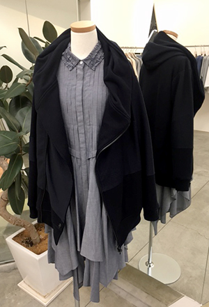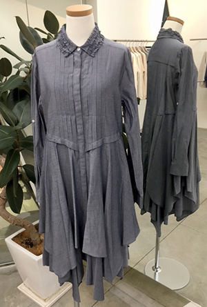 裾の表情が変わるイレギュラーなヘムラインは、