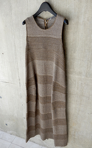 beigeボーダーのニットワンピが