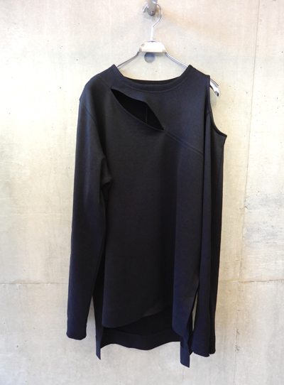 胸元に斬新なスリットが入ったトレーナートップス。