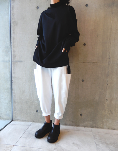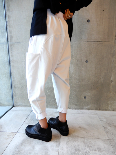薄手のフレンチテリーをスポーティなカッティングで仕立てたルーズフィットのパンツ。