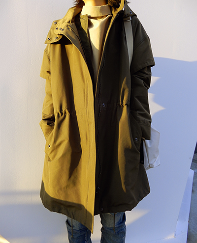 変形のspringコートでカジュアルかつモードな雰囲気に。