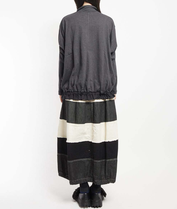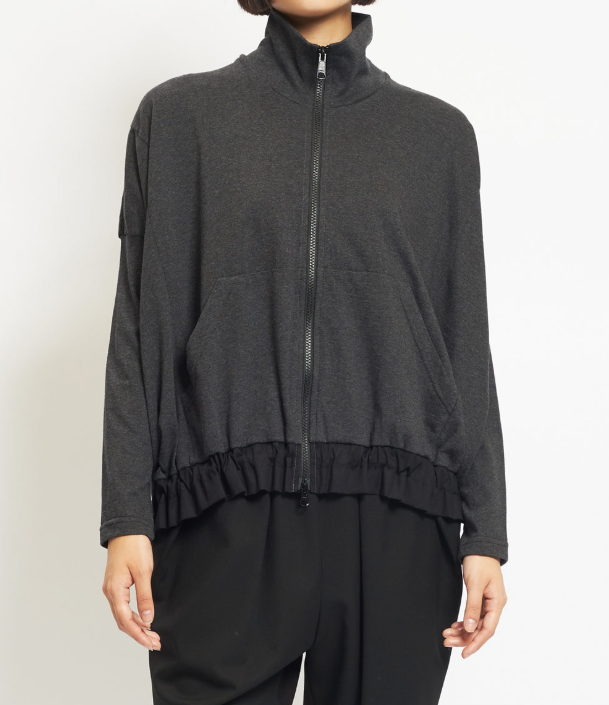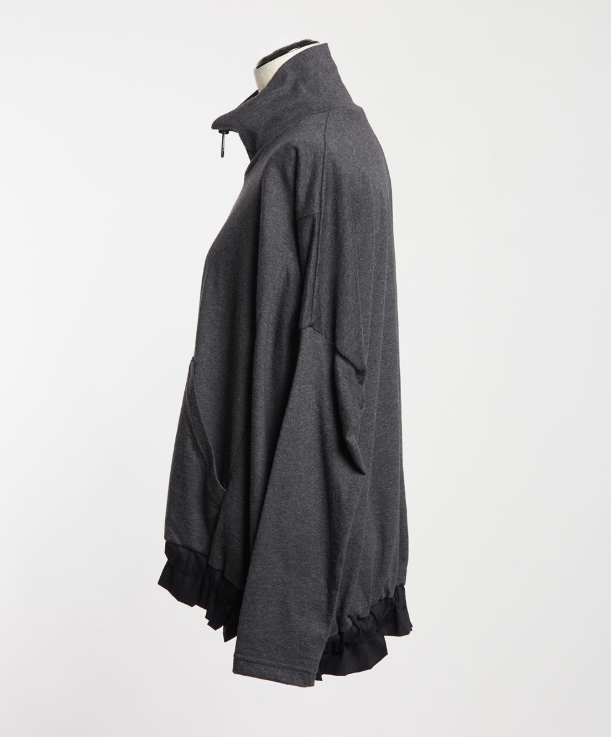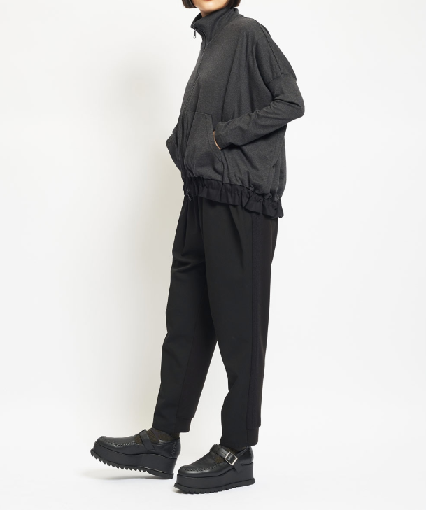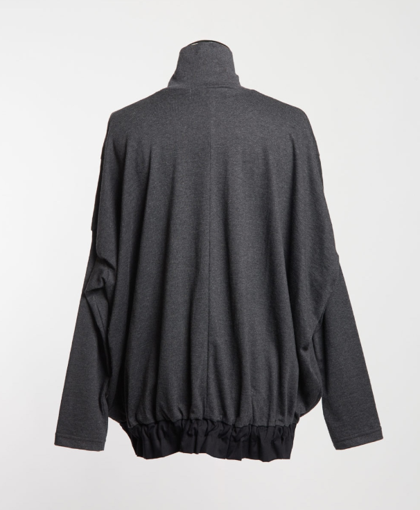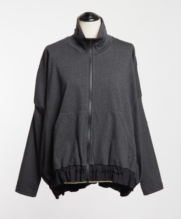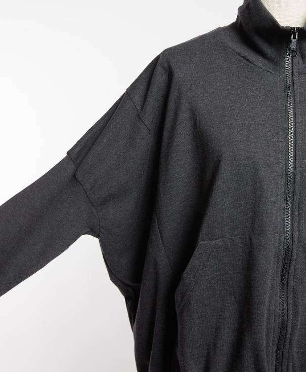 裾に向かってすぼまったバルーンシルエットに、袖はフィットしたデザイン