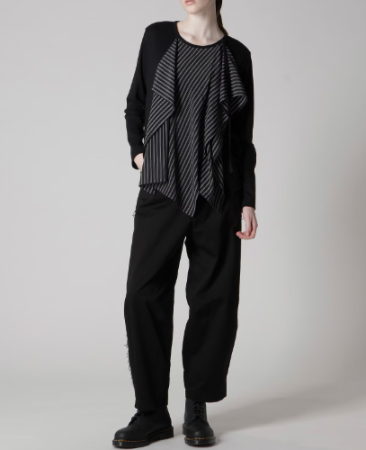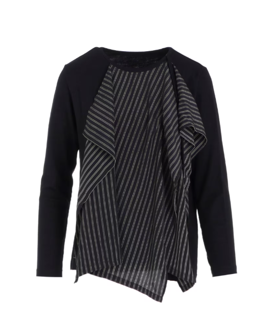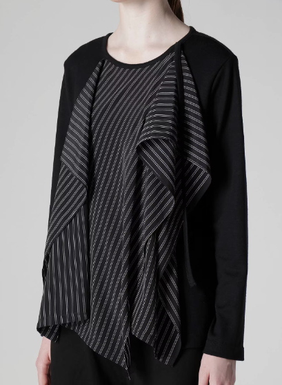 ストライプのデシン生地を組み合わせたプルオーバーカットソー