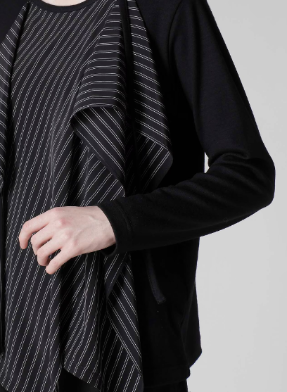 フロントのドレープと衿ぐりから垂らしたバインダー紐がポイント*