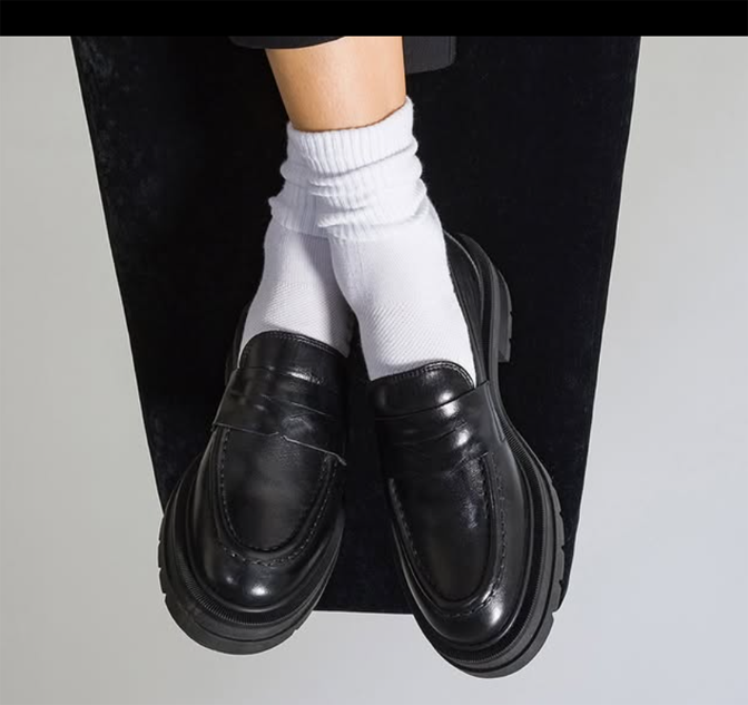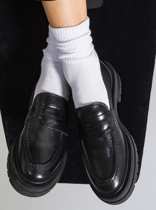 ローファーの定番カラーでもある黒は、足元にかっこよさを灯してくれる存在。