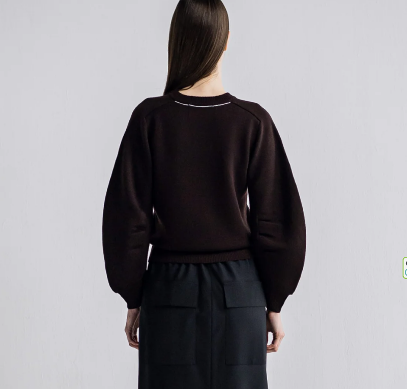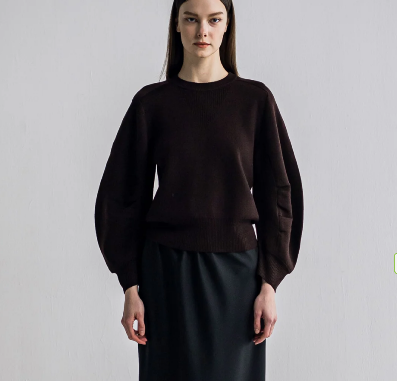 アームにギャザーを編み込み、丸く膨らむ様に作ったシルエットが特徴。