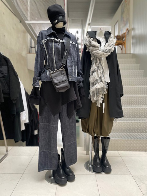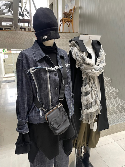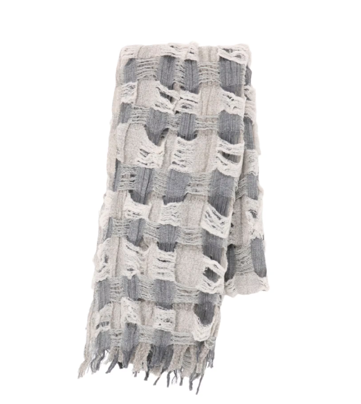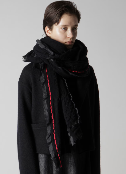 異なる糸で編みこんだストールを縮絨させることで、ぷくぷくと膨らんだような風合いになってます。