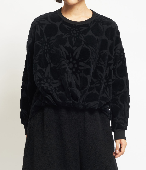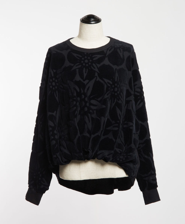 袖口はリブ仕様で、ボリュームスリーブとのメリハリが効いたデザイン