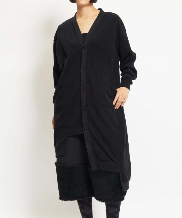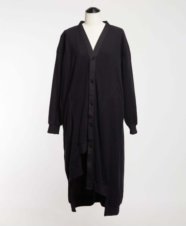 ロング丈のリラックス感あるシルエットが特徴のカーディガン