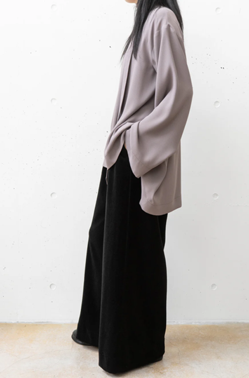 タックを施した落ち感のあるワイドシルエットで、リラックス感と上品さを兼ね備えており