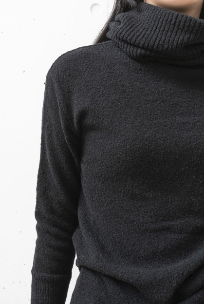 ウールとナイロンの混紡素材を使用した、柔らかく軽やかな手触りのタートルネックのニットです。