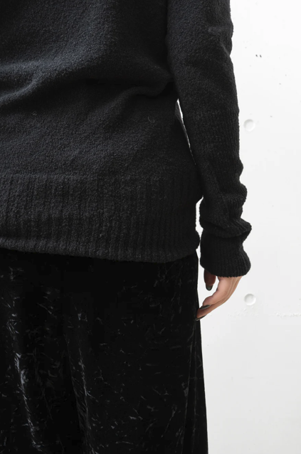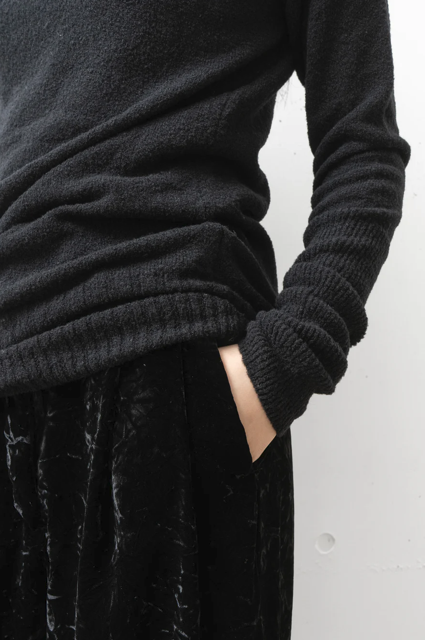 袖口と裾のリブを長めに設定し、ニットながらすっきりとしたシルエットを演出