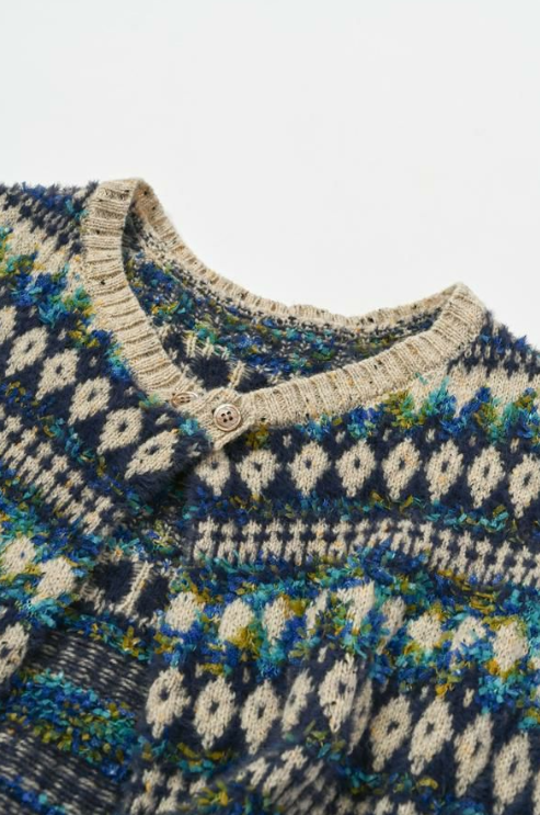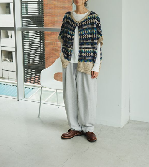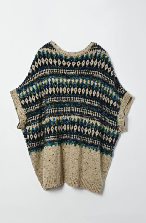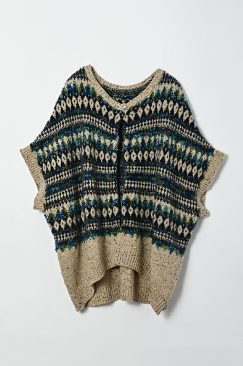 アーガイル柄を全面にあしらった、ポンチョ型のジャガードベスト
