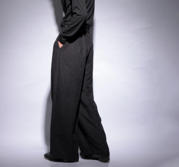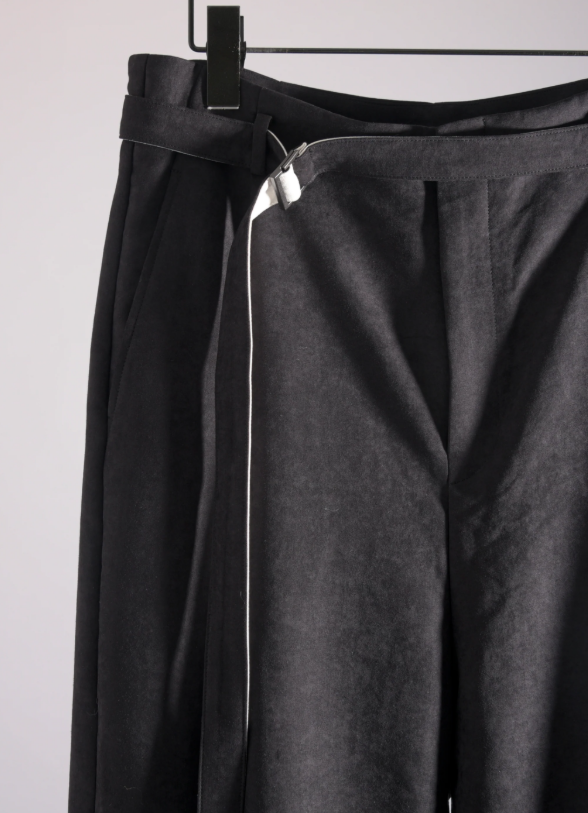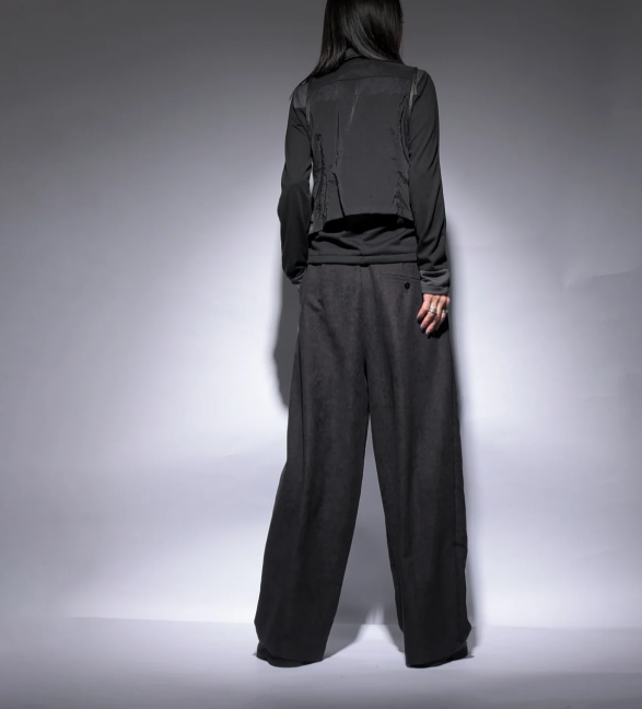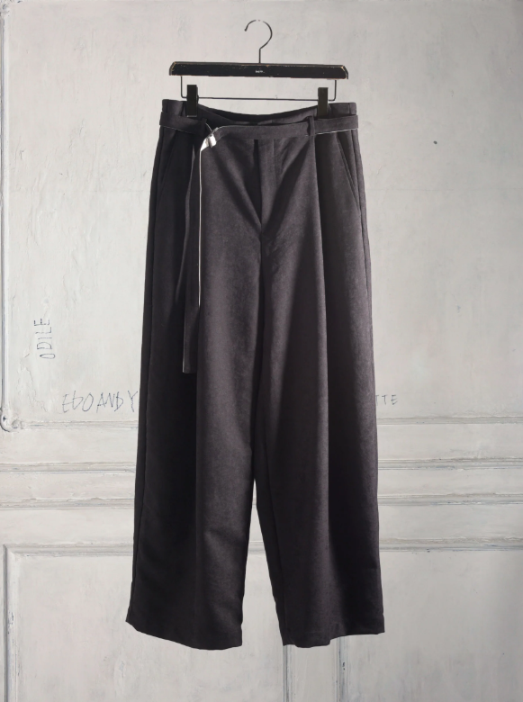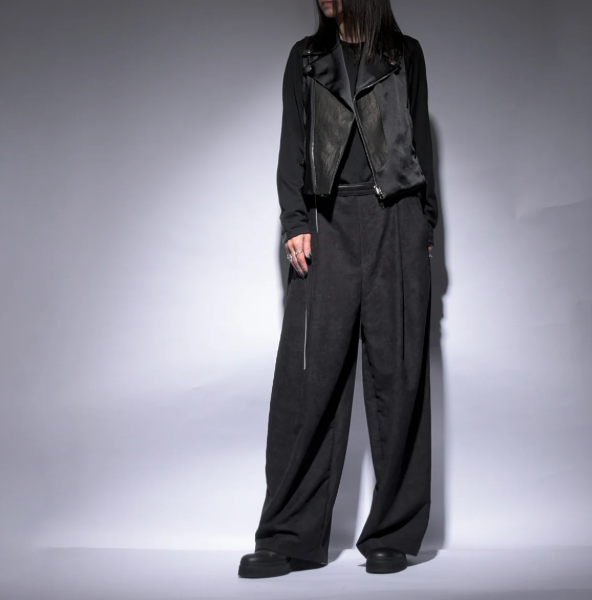 ゆったりめのウエストサイズ+股上は長くとってありますので、ラフな感じも出ていて大人っぽいモードな印象になります。