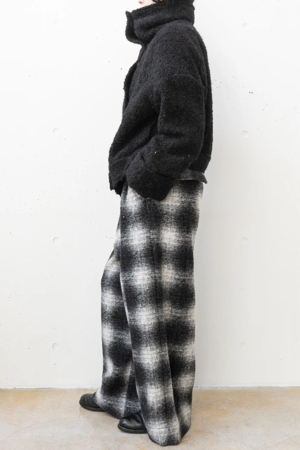 ループ状のニットを使用したダブルブレステッドハイネックのダブルブレストブルゾン
