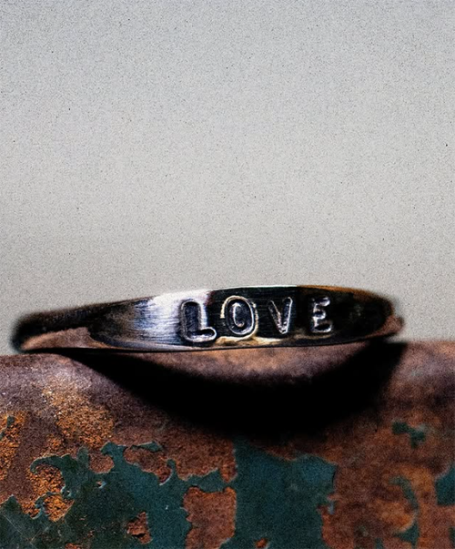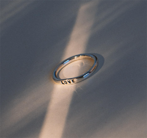 シンプルなフォルムに「LOVE」の刻印が映えるリング