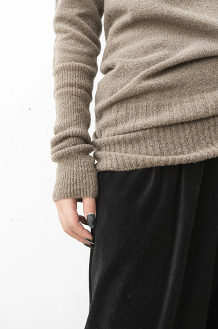 柔らかく軽やかな手触りのクルーネックセーターです。
