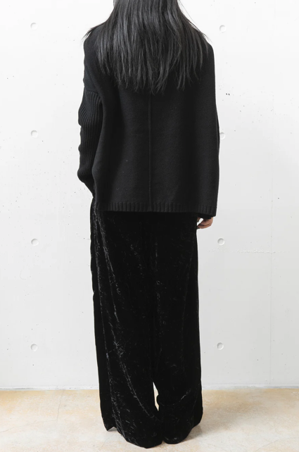 袖部分をリブ編みに切り替えることで、メリハリのある印象を生み出し