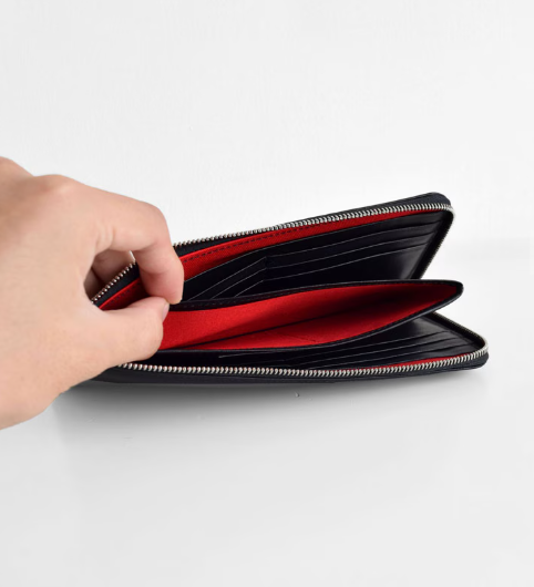 厚みを抑えたスリム設計で、高い品質と快適さに定評のあるL字ファスナー仕様