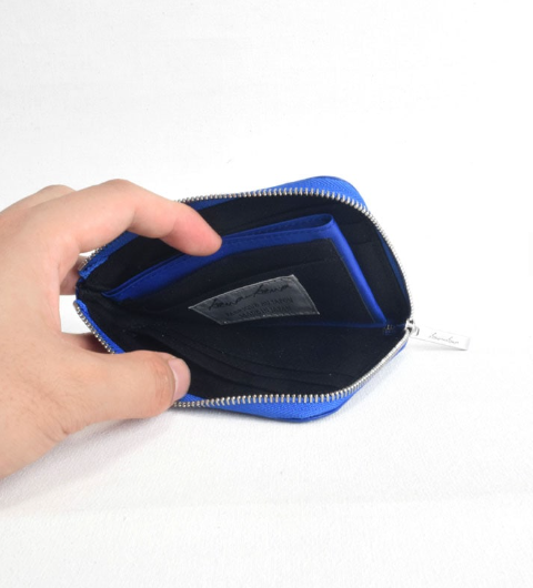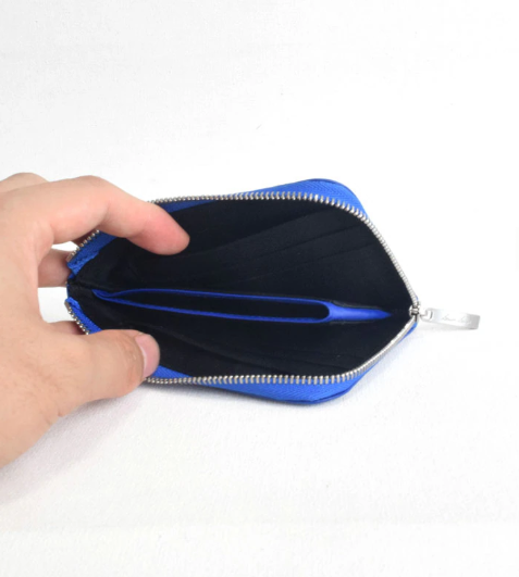 小銭入れはファスナーを使わずに出し入れでき、外側のファスナーを閉じることで小銭がこぼれない安心設計です。