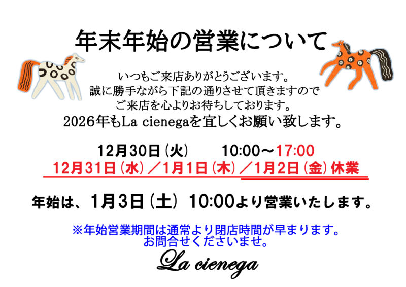 また、ご注文に関するお問い合せや未発送分は、1月3日以後に順次、ご対応させて頂きます。