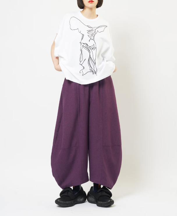 横に膨らんだシルエットが特徴的なパンツ