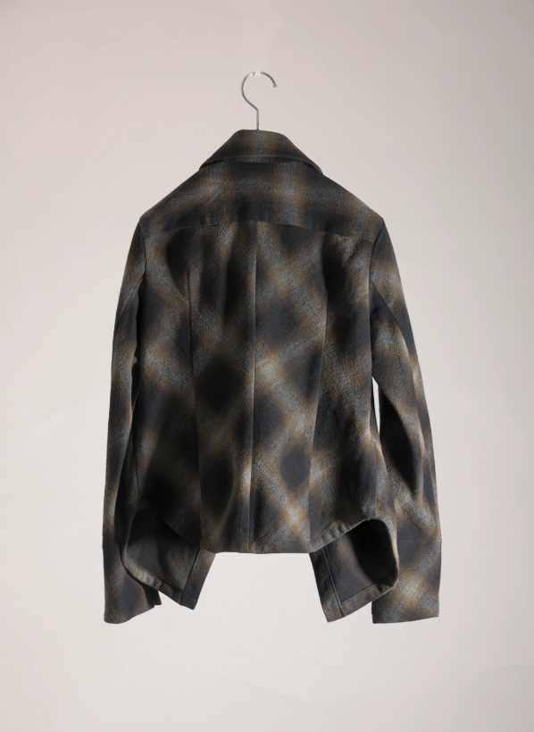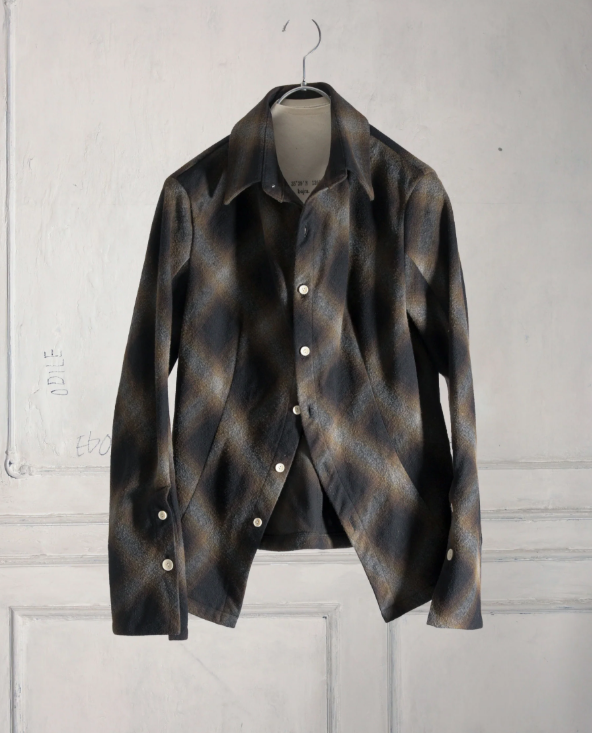 起毛感のあるオンブレーチェックい低濃度の黒染めを施し