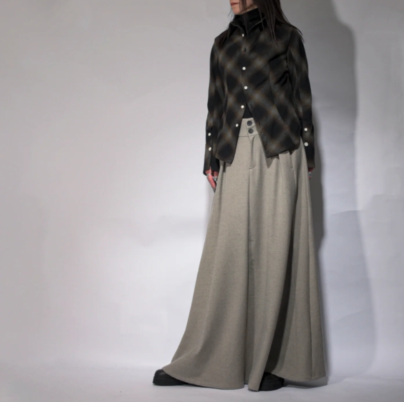 すっきりとしたラインになっていますので、ボリュームのあるボトムスにも合わせやすいです。