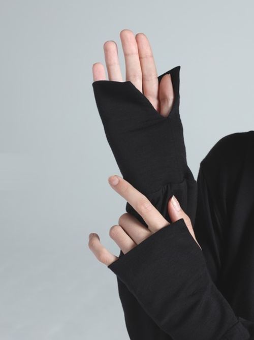 左サイドには隠しスナップボタン、ストラップ、ジップクロージャーを配置し機能性を高めている。