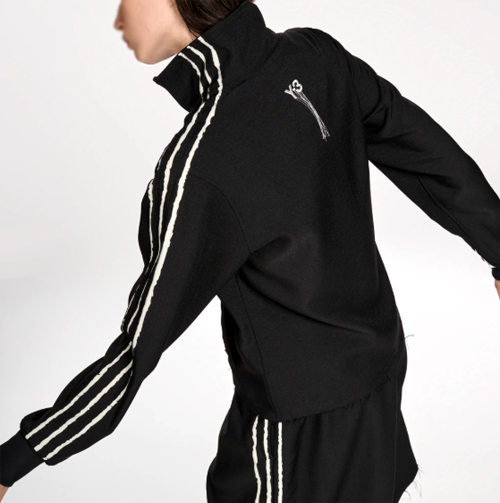 左腕に施されたラフカットのスリーストライプスが印象的な仕上がりのトラックトップ。