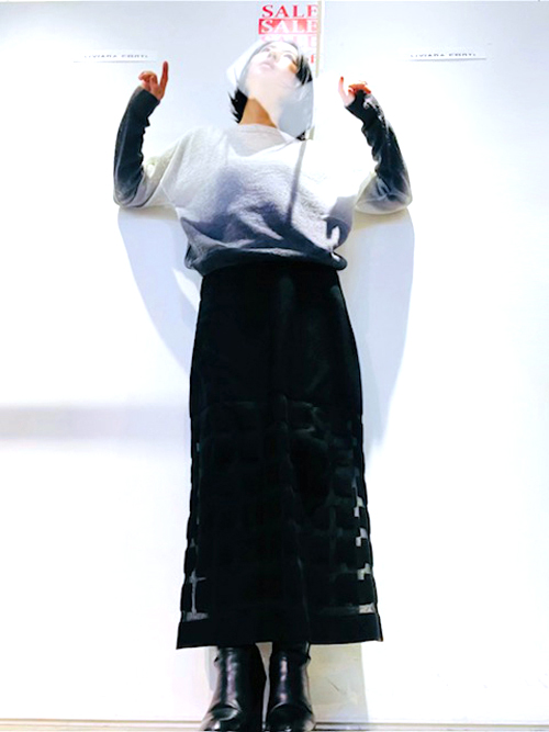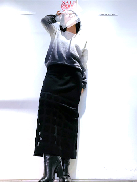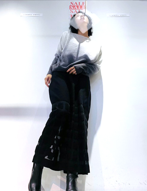 ニットに対して巧みな技術を持つリビアナによるアイテムはアシンメトリーで立体的